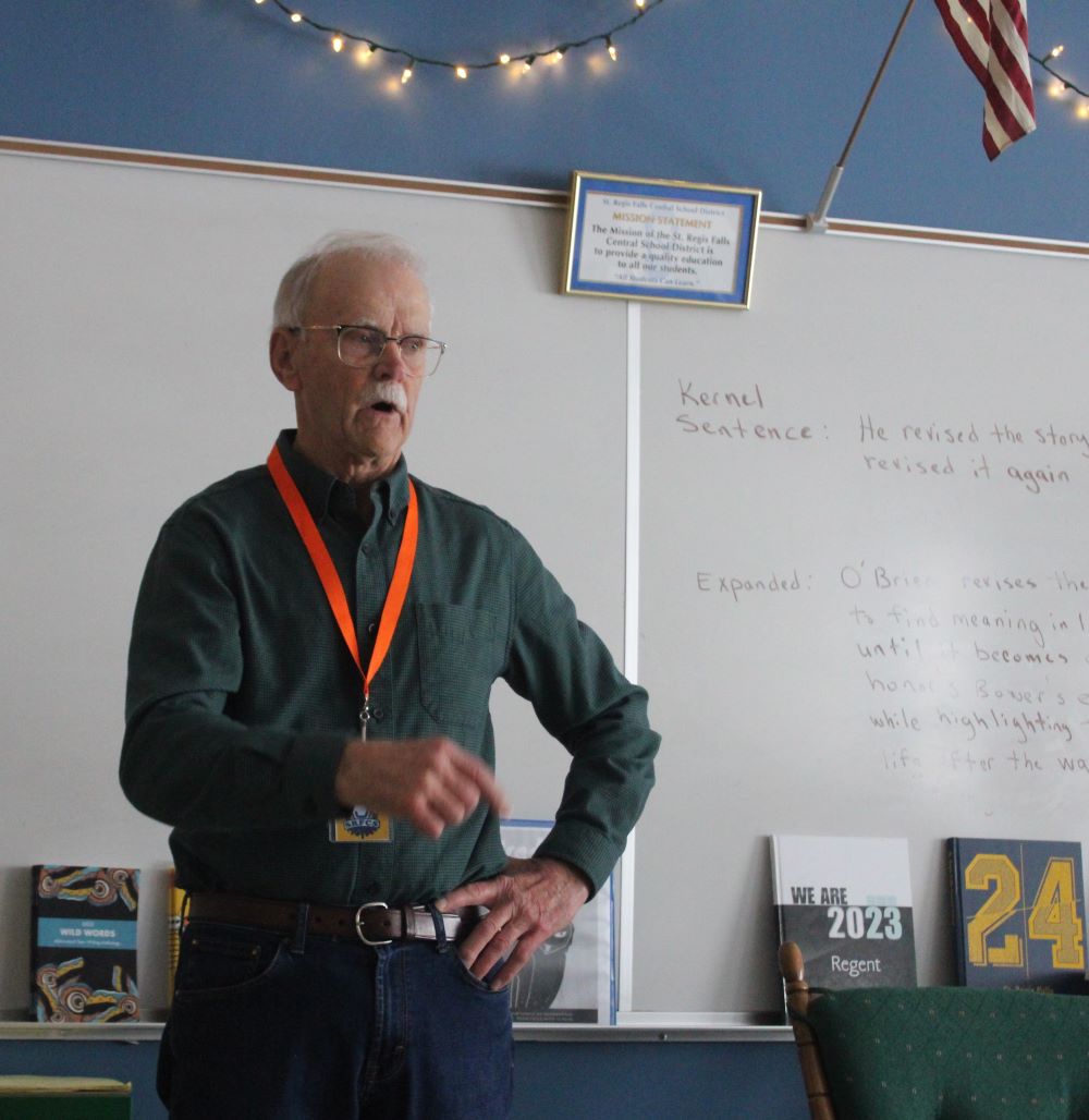 Local Vietnam War veteran Lawrence Cheney speaks Feb. 26 to 11th-graders who read a book about the war. (Photo - Hazel Ormsby)